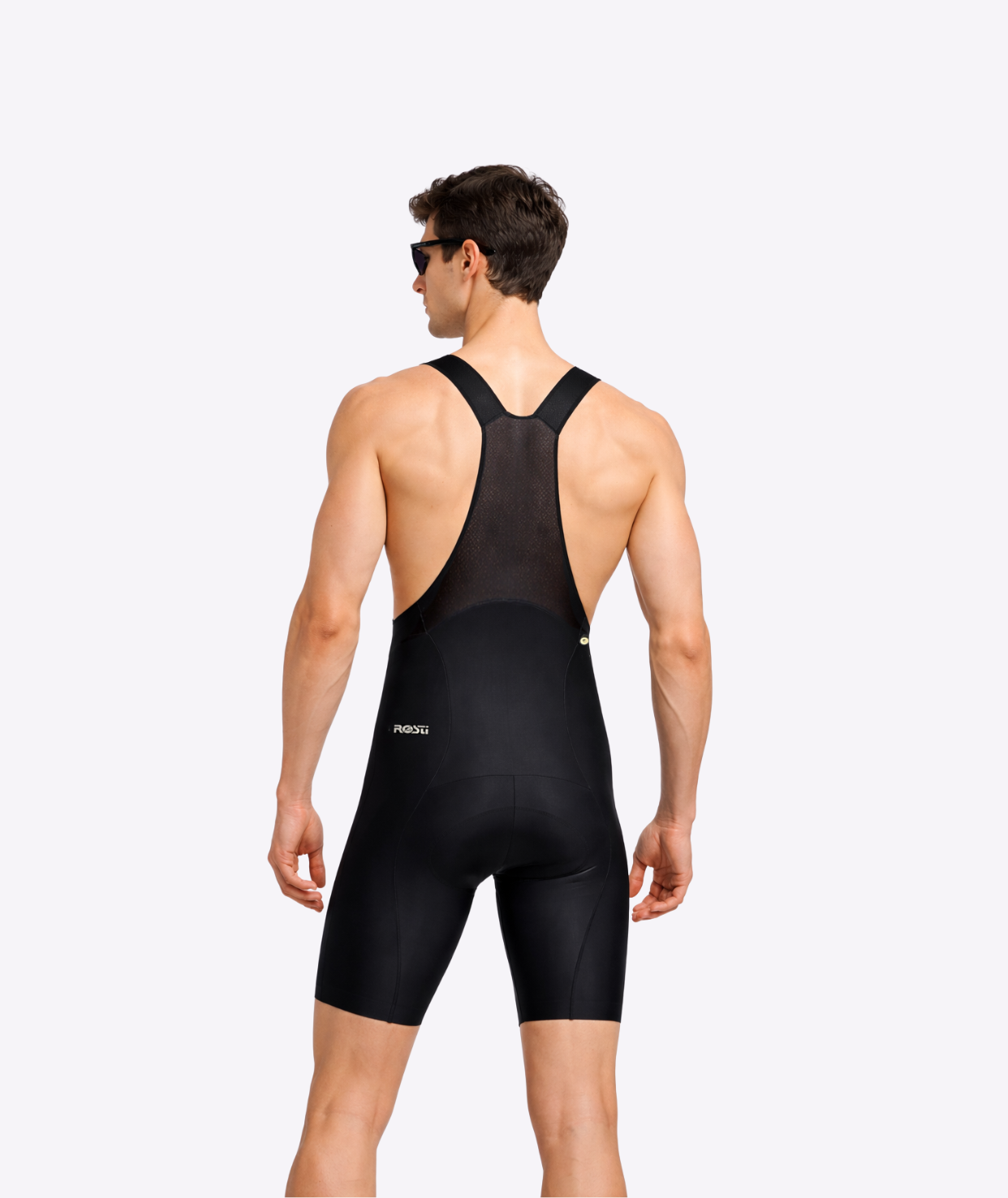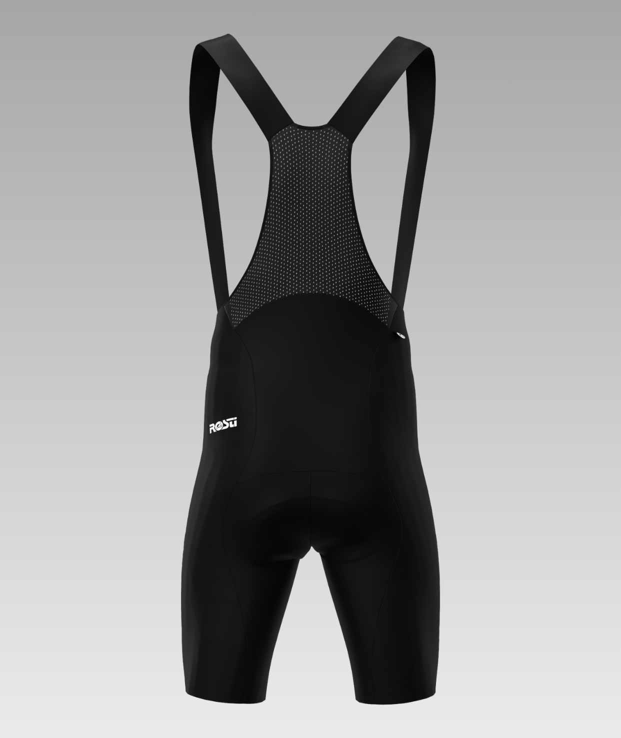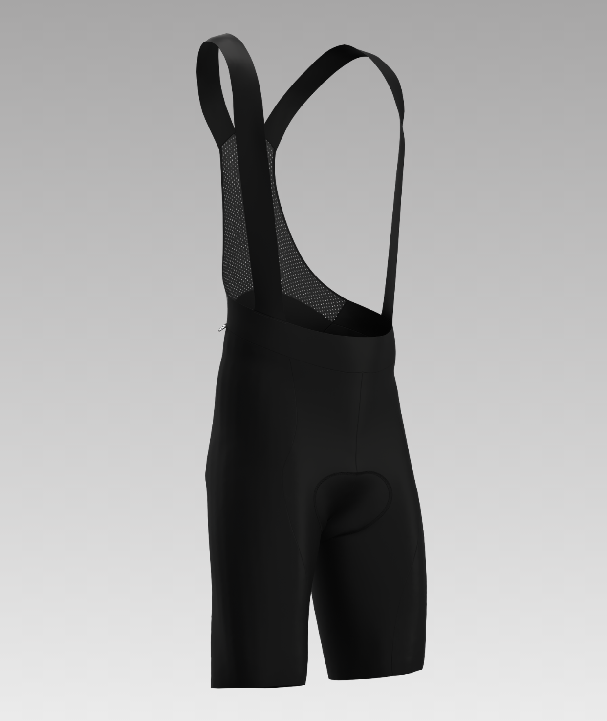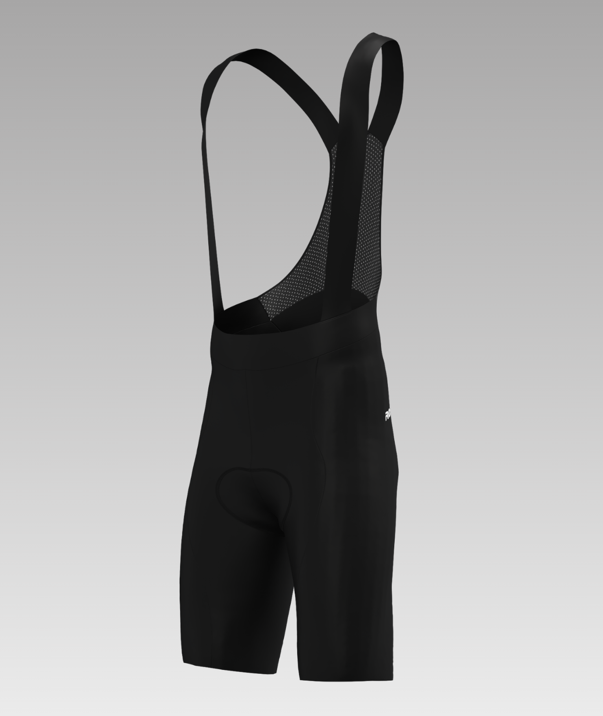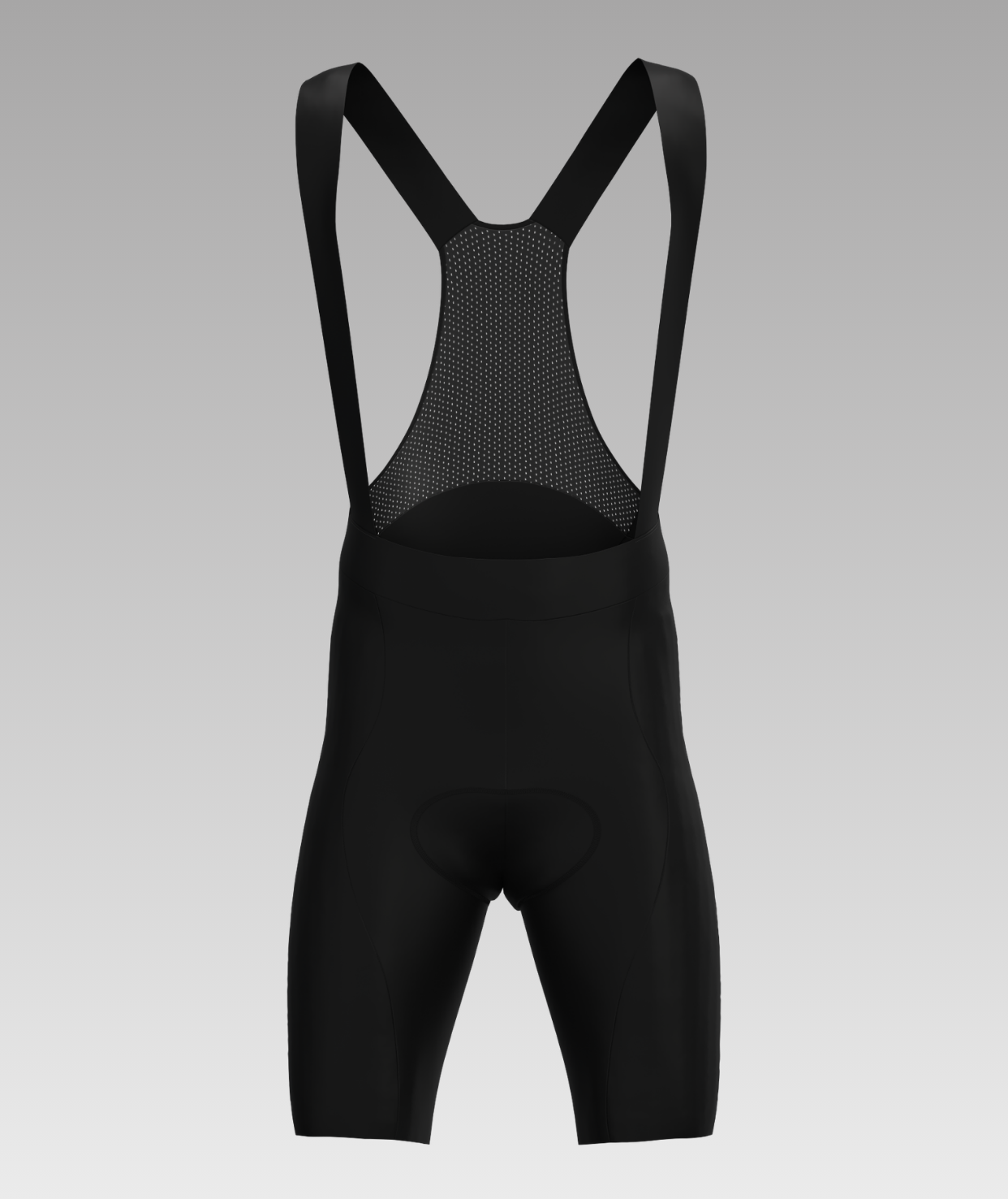 Bib shorts with elastic straps and a breathable mesh back panel. Made from piece-dyed fabric with silicone leg grippers at the hem.