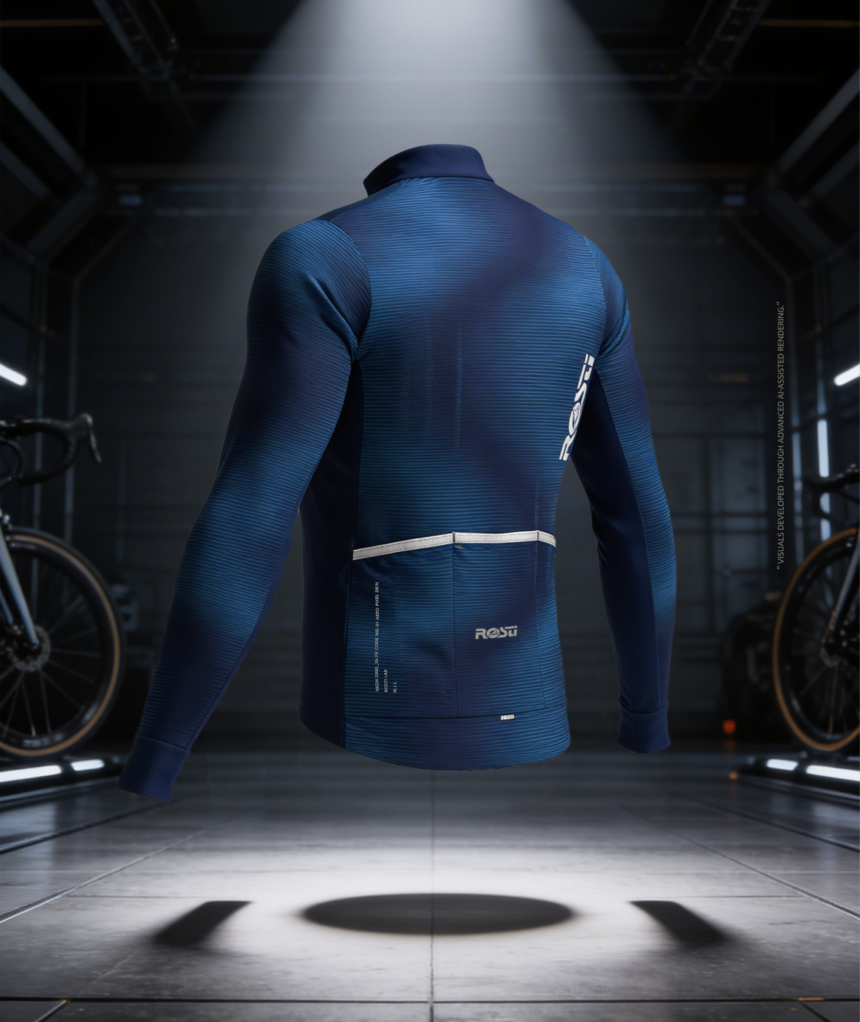 Presenta un polsino di 55 mm sul fondo manica, una zip invisibile a tutta lunghezza con cursore Rosti cam-lock e un bordo riflettente sulle tre tasche posteriori. Una banda elastica di 25 mm con grip in silicone è applicata sull'orlo posteriore, mentre un bordo in silicone di 10 mm rifinisce l'orlo anteriore per una vestibilità sicura e stabile.